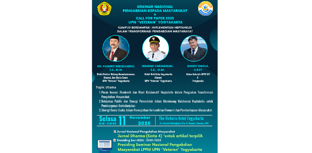 - Prosiding ber- ISSN : 3109-7839 (Prosiding Seminar Nasional Pengabdian Masyarakat LPPM UPN “Veteran” Yogyakarta)